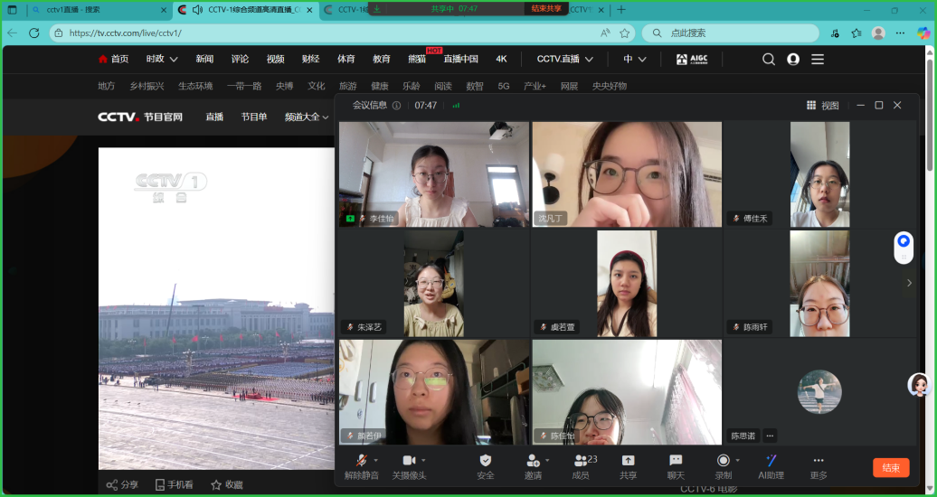 弘扬伟大抗战精神,凝聚团结奋进力量。9月3日上午,纪念中国人民抗日战争暨世界反法西斯战争胜利80周年大会在北京天安门广场隆重举行,中共中央总书记、国家主席、中央军委主席习近平发表重要讲话并检阅部队。为共同见证这一承载历史记忆与彰显强国风采的重要时刻,国产在线全体党政班子成员、党支部书记代表、师生党员代表在党员之家集中收看。观看现场庄重肃穆,师生们全神贯注,深受震撼。