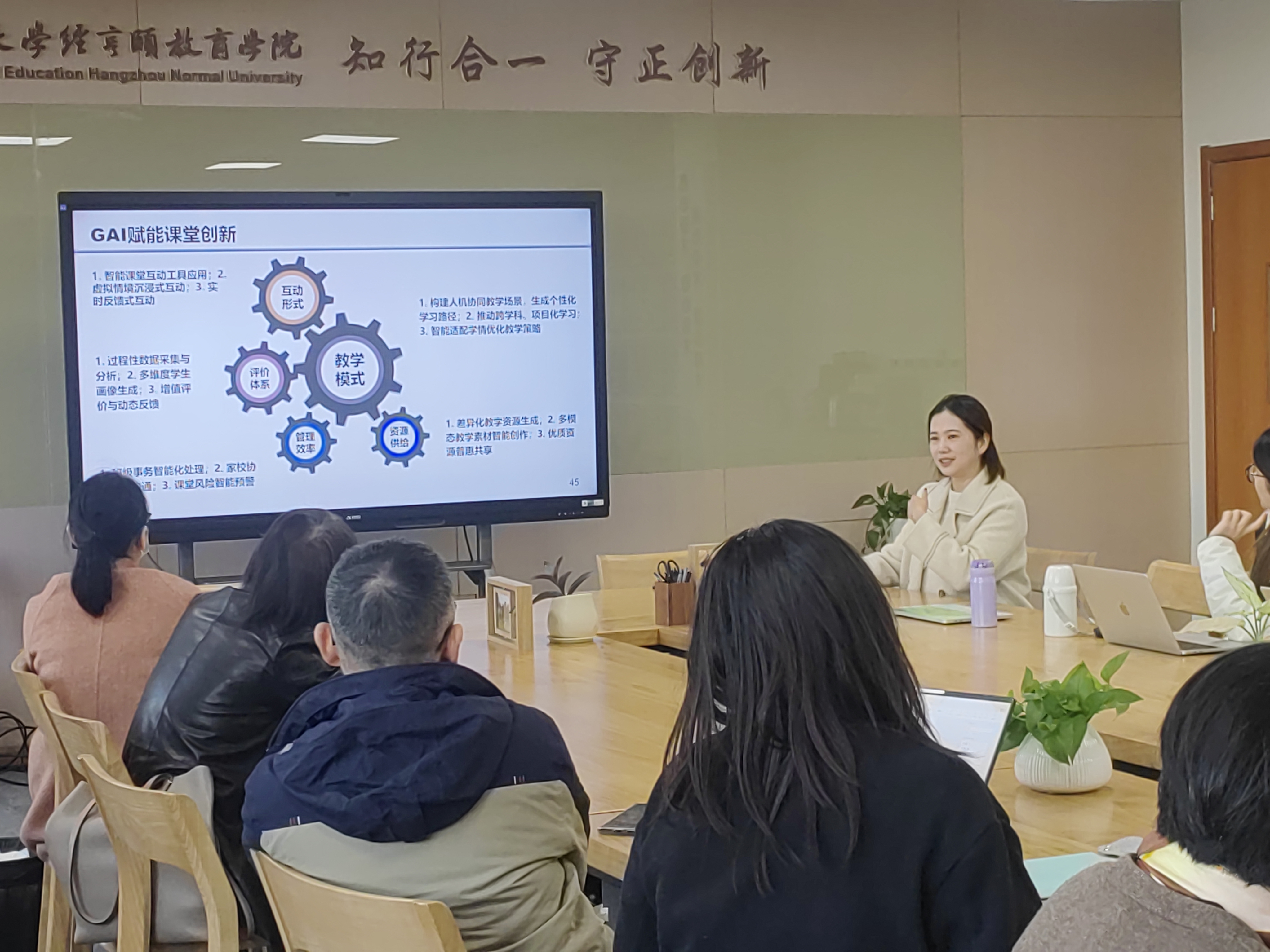 随后,胡玥副教授以“AI赋能教学资源创新”为主题,通过生动的案例呈现了AI在课堂资源生成中的多种可能性。她展示了由AI生成的音频、视频、动画、微课、虚拟实验等教学素材,并分享了利用AI制作英语对话场景、短视频、互动网页等成果。她指出,AI已逐渐成为教师备课、课堂互动和个性化学习设计的重要工具,而教师的创造力与专业判断仍是推动课堂创新的核心。