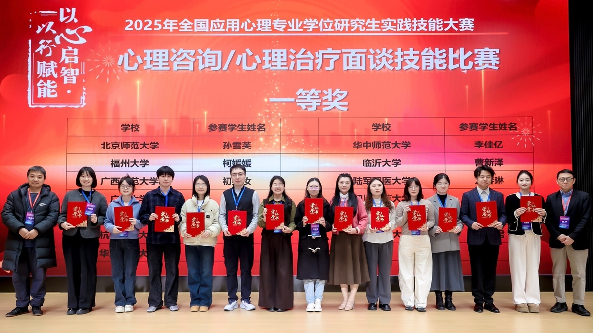 近日,国产在线 24级应用心理专业学位硕士生参加了2025年全国应用心理专业学位研究生实践技能大赛,表现优异。其中,段文璟同学荣获一等奖,秦珩洁同学荣获二等奖。