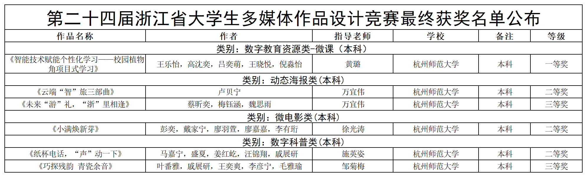 获奖名单: