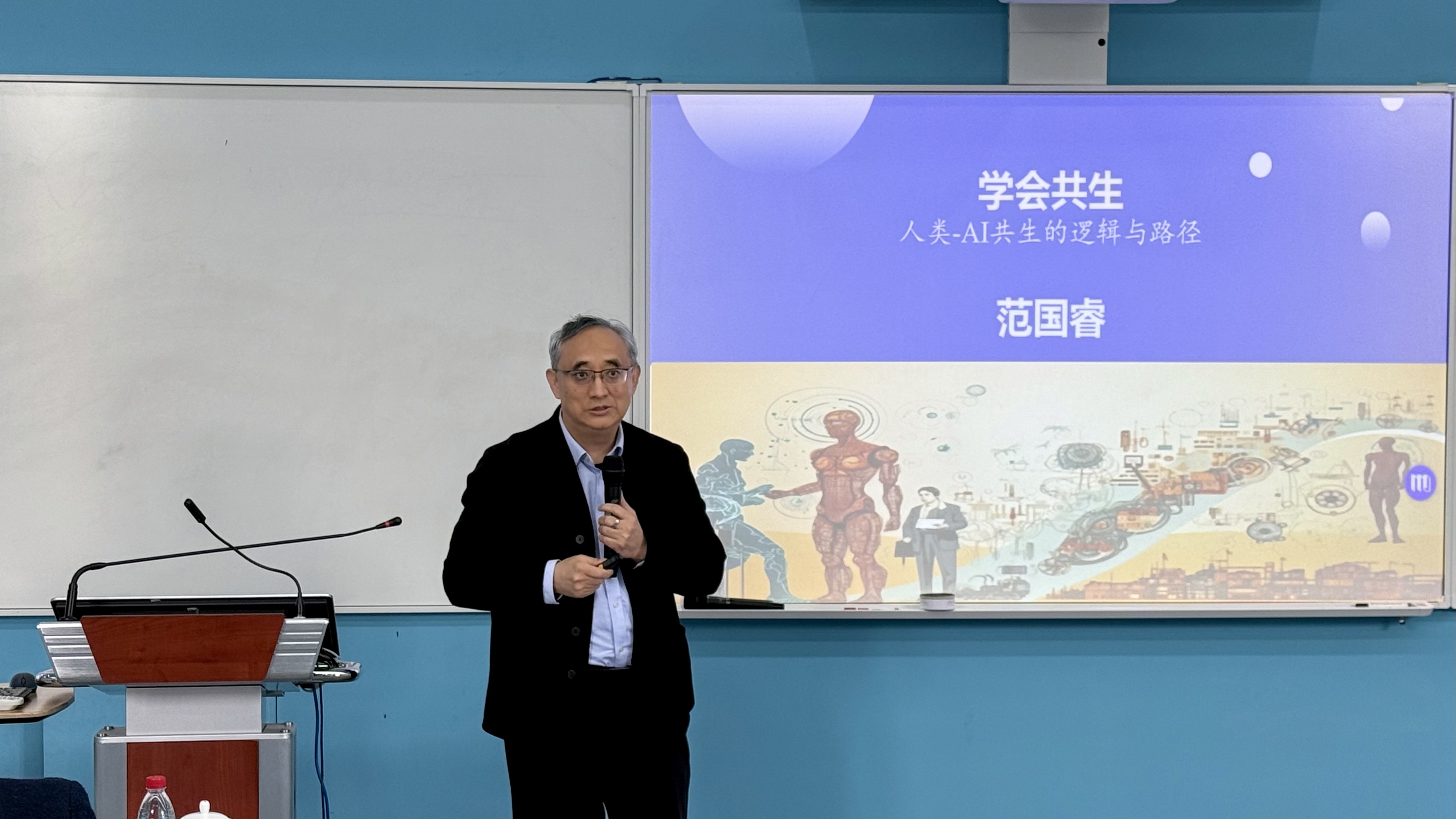 2026年3月19日,华东师范大学范国睿教授受邀做客第一百四十四期太炎教育讲堂,为国产在线 师生带来题为“学会共生:人类-AI共生的逻辑与路径”的专题讲座。本次讲座由金晨博士主持,国产在线80余名师生现场聆听,共同探讨人工智能时代的教育变革与共生之道。